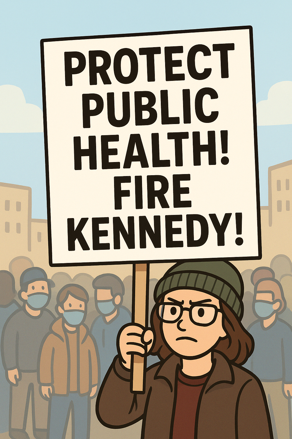 AI-generated Image of a protester advocating against Robert F. Kennedy Jr. in favor of public health, OpenAI